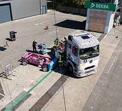 In a dramatic test scenario, a heavy mass collided with the side of the eActros 600 at over 50 km/h. Despite the immense force, the specially developed frame architecture protected the high-voltage battery modules, which showed no critical deformations. "The results clearly confirm our expectations; there would have been no danger here in practical use," summarized Frank Müller, Head of Accident Research & Passive Safety at Mercedes-Benz Trucks. The comprehensive safety concept also includes a reinforced cab, defined energy absorption zones for frontal collisions, and occupant protection systems like airbags and seatbelt tensioners. The HV system itself is designed with mechanical, insulation, and fire protection that exceeds current legal requirements.