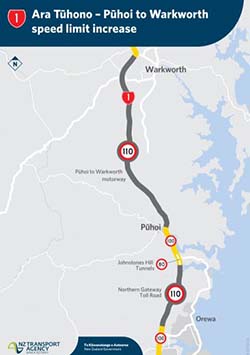 “Late last year, the NZ Transport Agency (NZTA) publicly consulted on increasing the speed limit from north of the Pūhoi interchange viaduct to south of the Warkworth roundabout to 110km/h. More than 7,900 submissions were received across Northland and Auckland. Responses were overwhelmingly positive, with 94% in support of the increasing the speed limit and 91% strongly in favour.