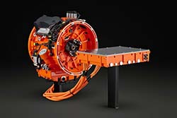 The e-machine has an integrated clutch which not only allows it to be used as a hybrid solution but also as a fully electric solution, thereby making the future transition to full electrification a seamless process. The low noise levels in electric mode makes it ideal for use in cities, while also creating a better work environment for the operators. Hybrid mode also provides possibilities for extra power and range when needed.