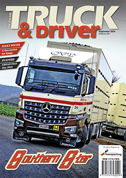 The star on the cover for the September 2025 issue of New Zealand Truck & Driver magazine wears the familiar colours of Clutha Valley Transport.