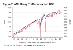 The trend in light traffic has lifted in the last few months, consistent with other indicators suggesting that the economy has turned higher. In per capita terms (using ANZ population forecasts), light traffic has also lifted.