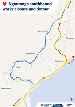 On Monday 19 January, 10pm-4.30am, SH1 will be CLOSED to southbound traffic from Johnsonville off-ramp to Ngauranga Interchange. This is for essential road resurfacing works.