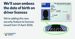 NZ Transport Agency Waka Kotahi (NZTA) is adding a new security feature to driver licences by embossing the driver’s date of birth over their photo on the licence card.